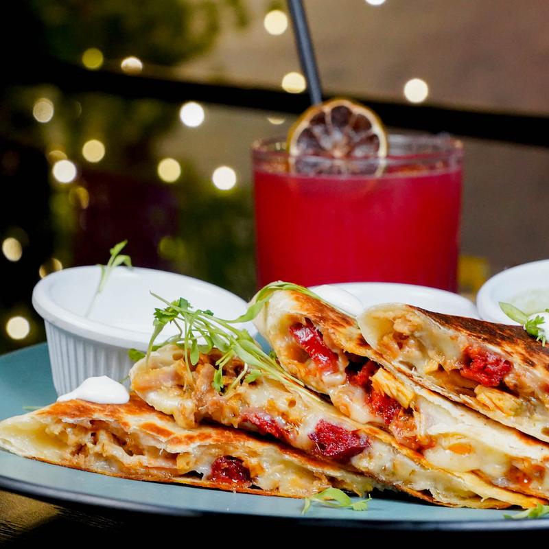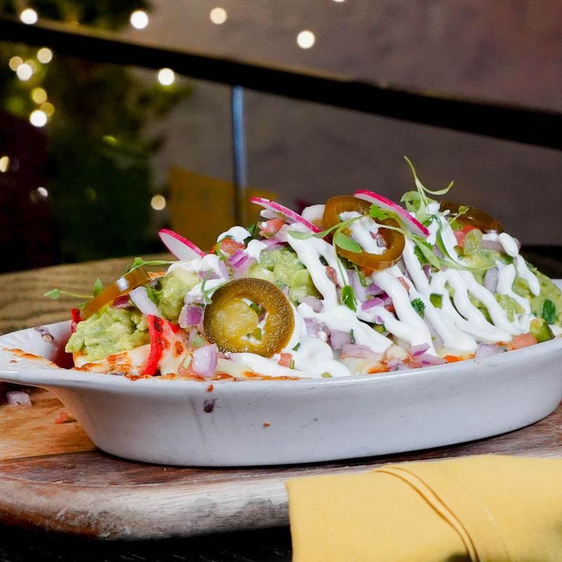 Grilled chicken, Mexican chorizo, Monterey cheese, pico de gallo, sour cream, salsa verde.